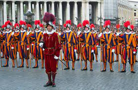 The body of the Pontifical Swiss Guard was founded in 1506 by Pope Julius ° II. founded, discontinued twice, and only reorganized in 1810. The defense of Pope Clement VII against the numerically far superior Sösdner army of Emperor Charles V at the Sacco di Roma – the sack of the Holy City – in 1527 is remembered. 147 Swiss Guards perished at that time.