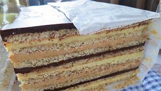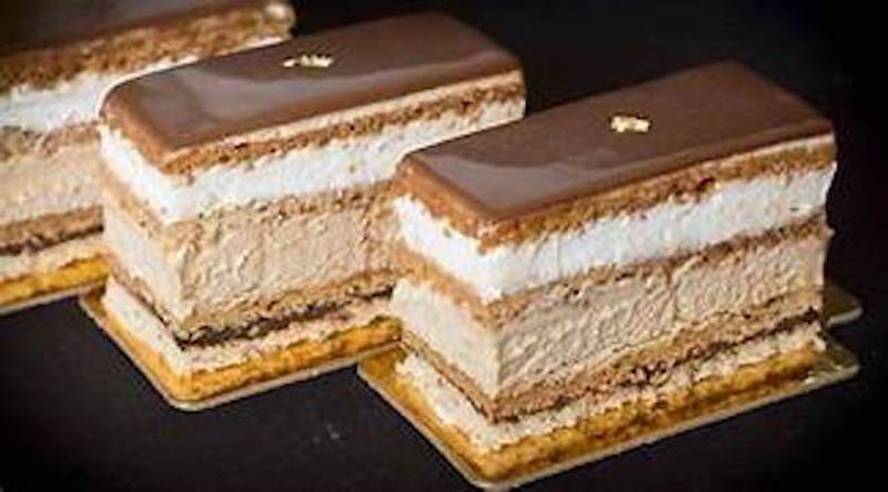 The Marjolaine is essentially a multi-layered rectangular cake, but calling it “just a cake” is like calling the Mona Lisa “just a painting.” Here’s what’s inside: