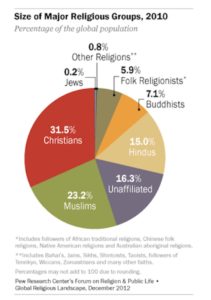 How many religions are there today? Nobody knows. The five most famous are Christianity, Islam, Hinduism, Buddhism, and Judaism.